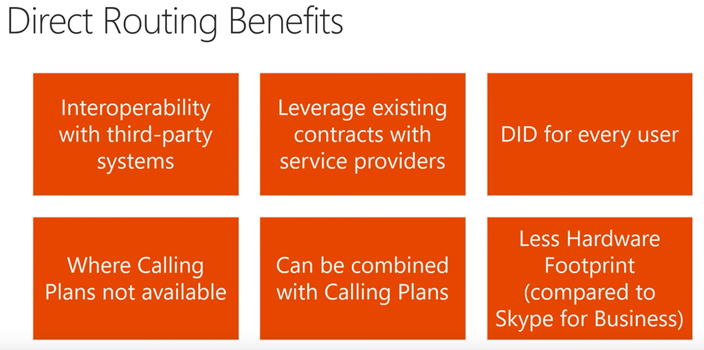 - Can combine with Calling plans and chose what numbers use Calling and which use Direct Routing