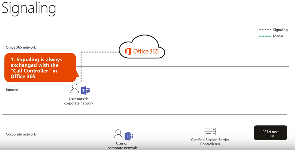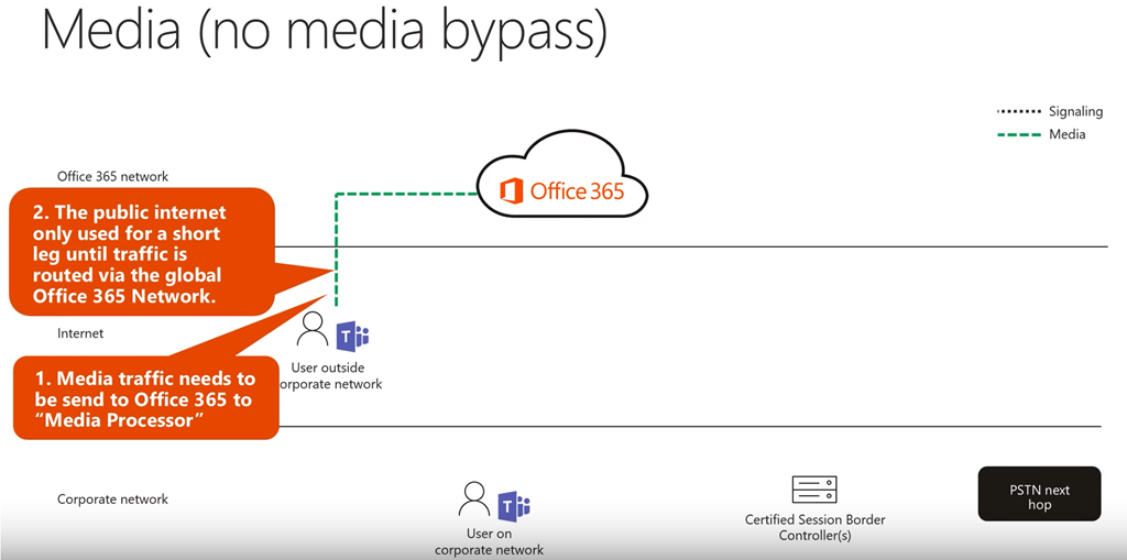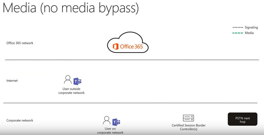 - Corporate Network – users using Microsoft Teams inside the corporate network , SBC and PSTN (PBX or PSTN Trunk)