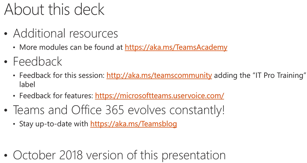 Housekeeping on this deck for additional resources, feedback and note Office 365 is constantly evolving.