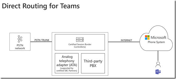 Phone System is connected to certified SBC that could be connected to other PBX’s or ATA and SBC is connected to PSTN trunk