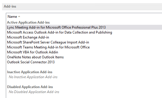 When viewing the Add-in’s from File>Options>Add ins in Outlook i could see Microsoft VBA for Outlook Add-in was listed as disabled application add-in