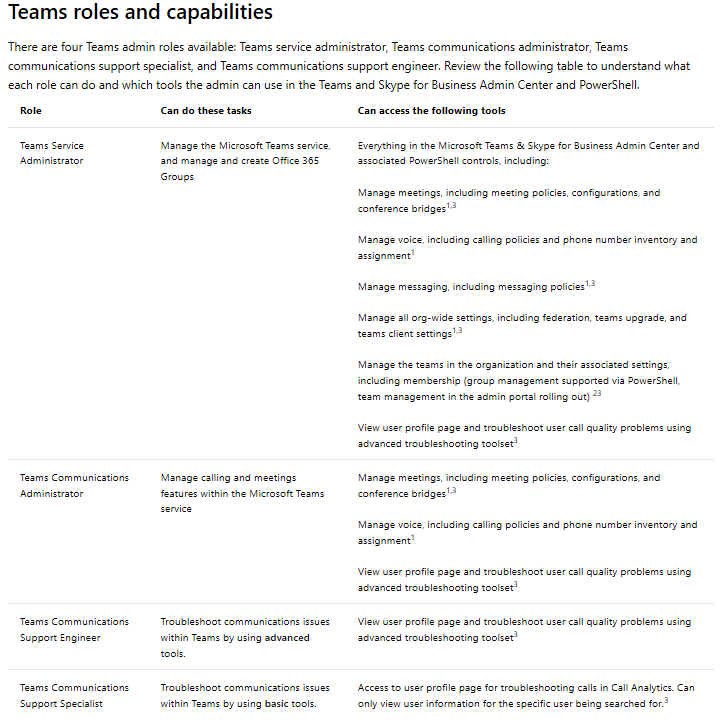 More info on Teams admin roles here