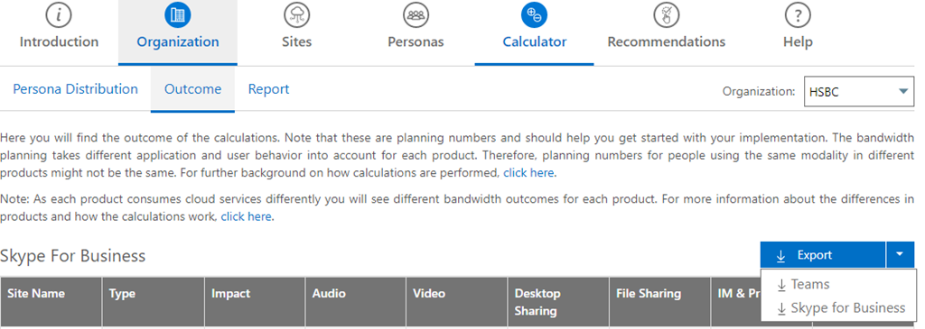 On the outcome tab you can then export Teams of SfB