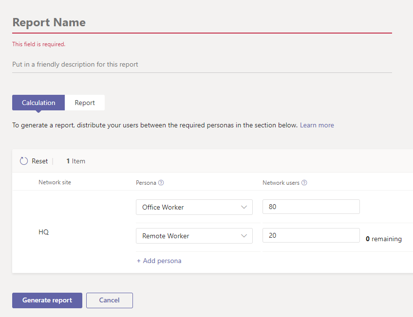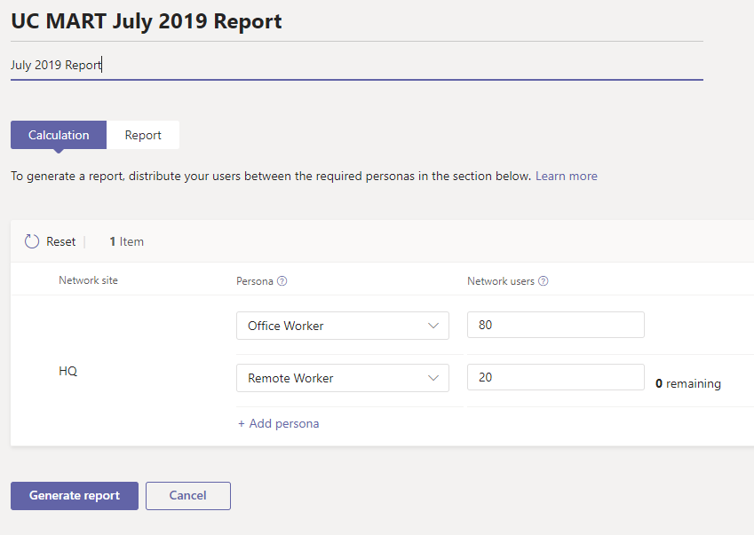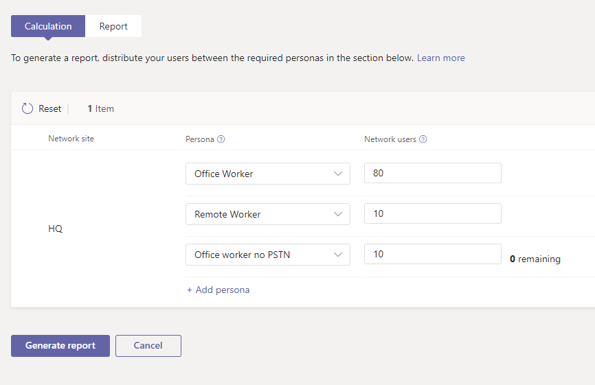 By default it added office and remote and set 80% to Office and Remote to 20% using the Microsoft recommended personas but we can change if needed.