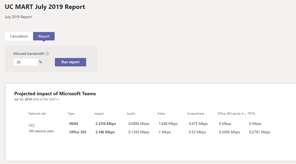Here was can project impact and also we can change the percentage of allowed bandwidth for Teams 30% is recommended it says