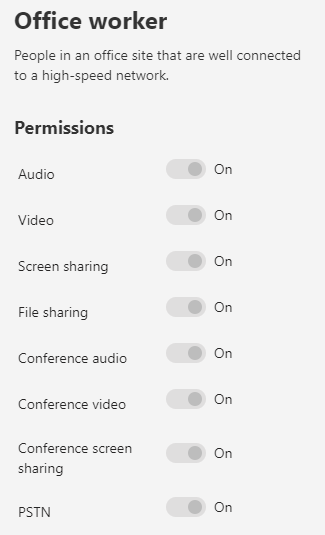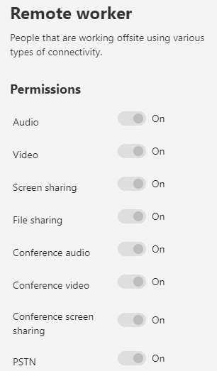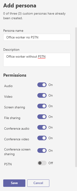 Seems each personas created has all permissions set to On but if that doesn’t match your personas then we can also create custom ones (only 3) but these three will pretty much cover most bases i think. Perhaps we haven’t deployed PSTN. (Why not i may ask