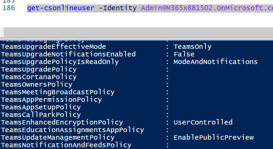 Grant-CsTeamsEnhancedEncryptionPolicy -PolicyName UserControlled -Identity AlexW@M365x881502.OnMicrosoft.com