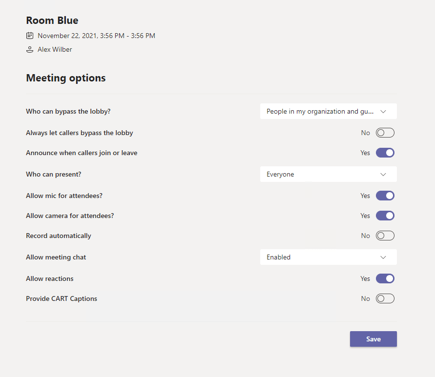 Here you can assign presenters to rooms, set a time limit, automatically move people to rooms and choose to let people people return to the main meeting