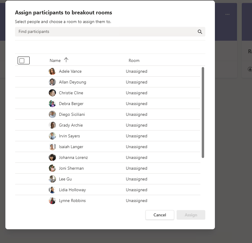 Click a participant then assign a room