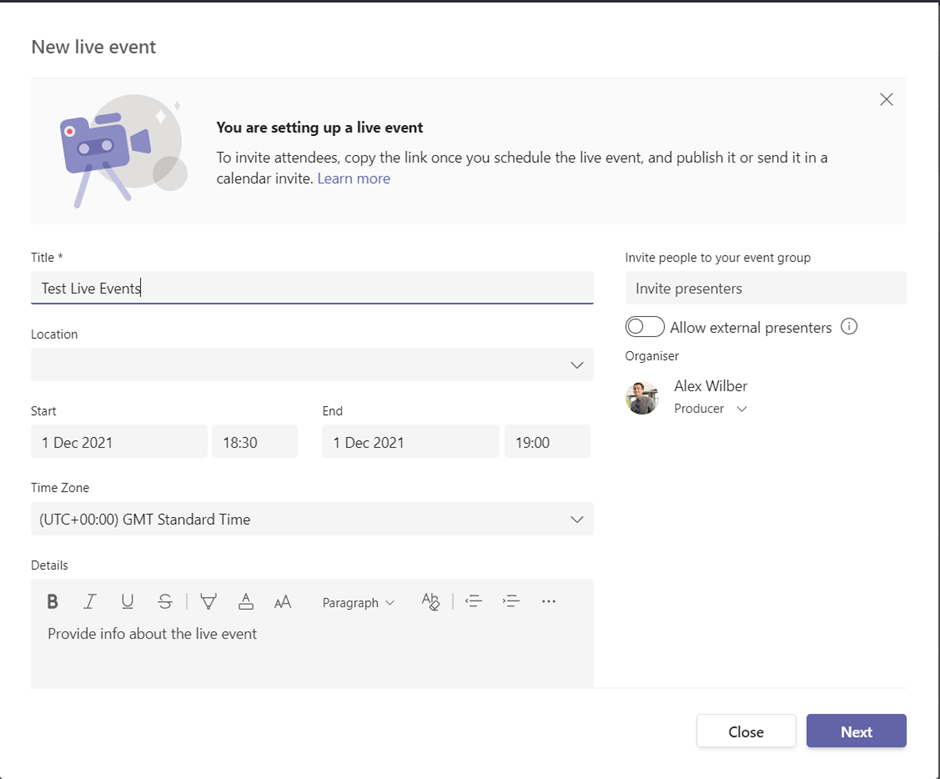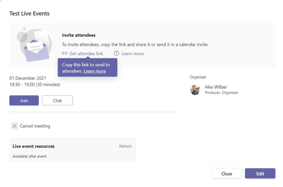 So in the Teams Desktop Client i scheduled a live event