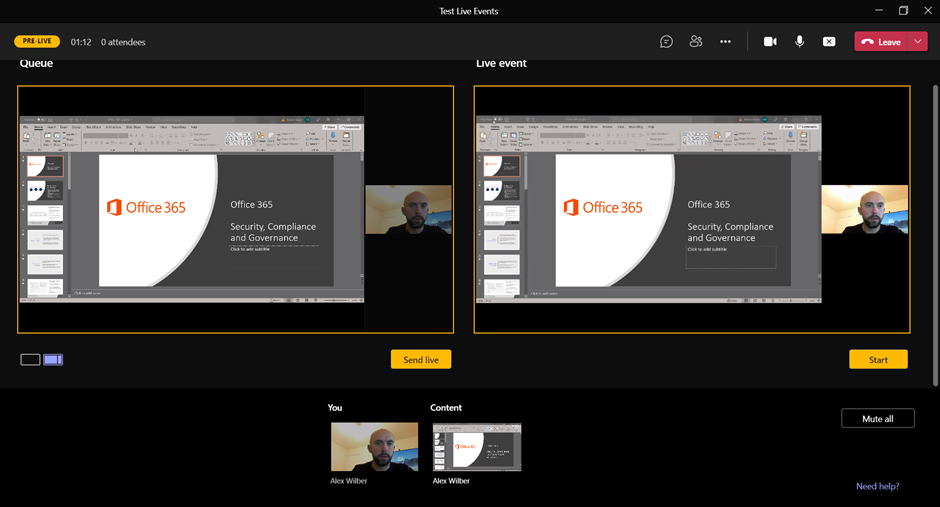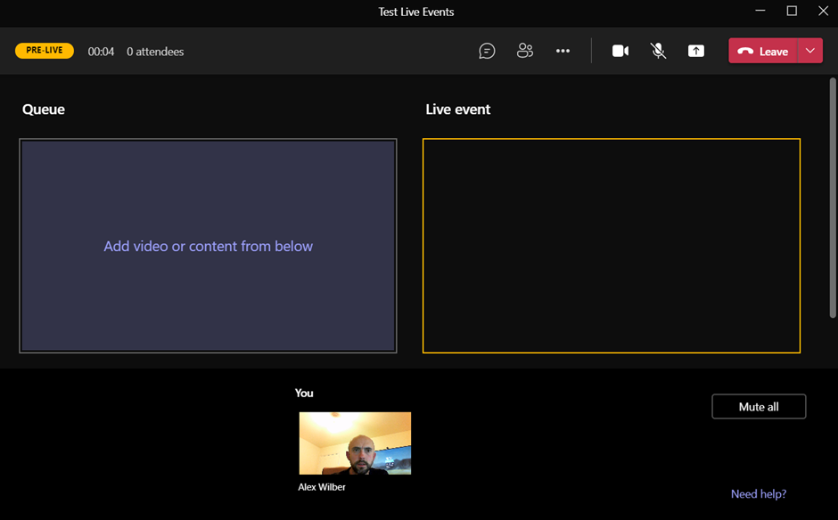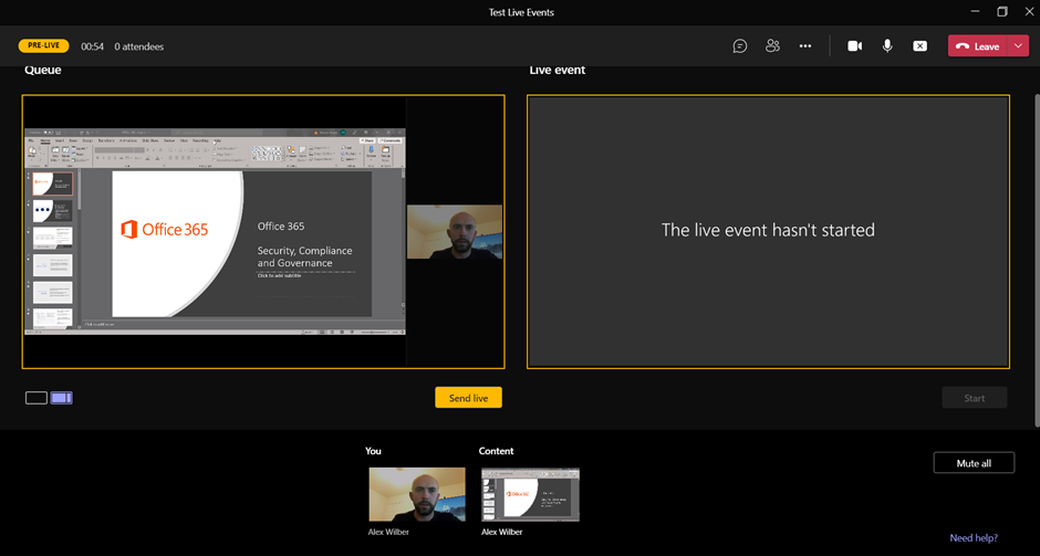 Audience member seem to have to also join back into the event but using the same url which is good and i see the message the live event hasnt start. i started it and all was good.