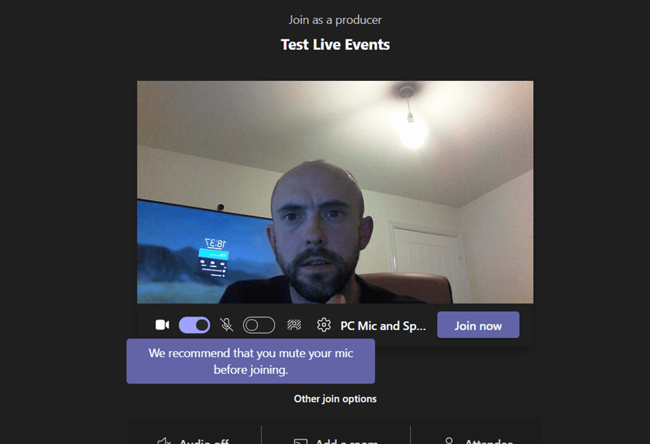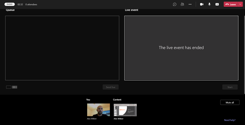 and i see a checking if we can restart your event message. Then the windows closes and im back to my calendar in Teams so i join the live event again. So your kicked out. producers and presenters must rejoin again.