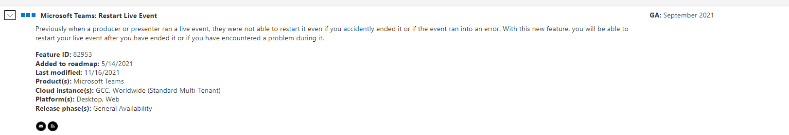 I noticed that on the M365 roadmap Restart live events has launched ! Interesting !