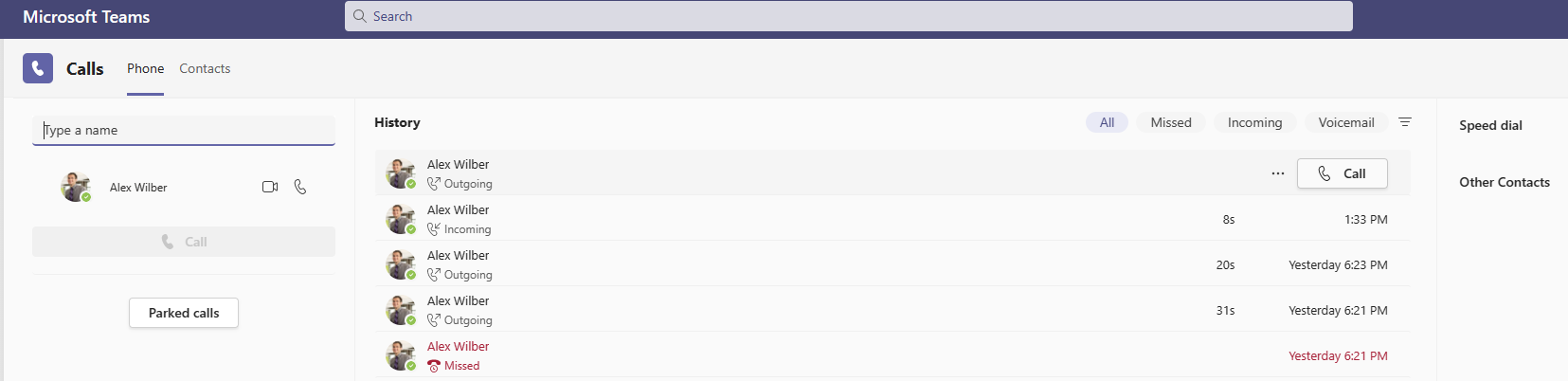 If in Teams i make a call to another user Alex