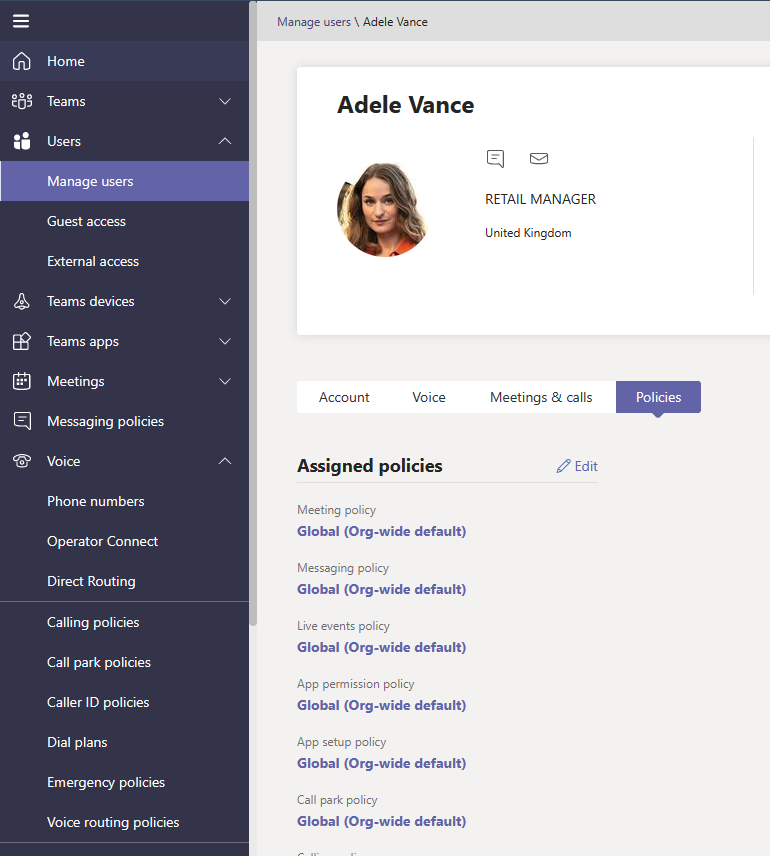 Click Edit by assigned policies