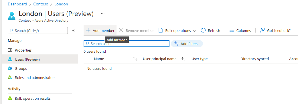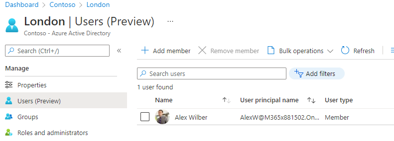 So to add a user into the administrative unit click Add member and the person names or device account that you will manage.