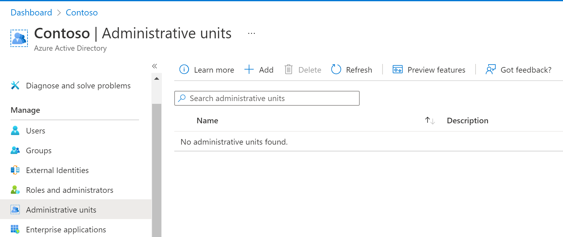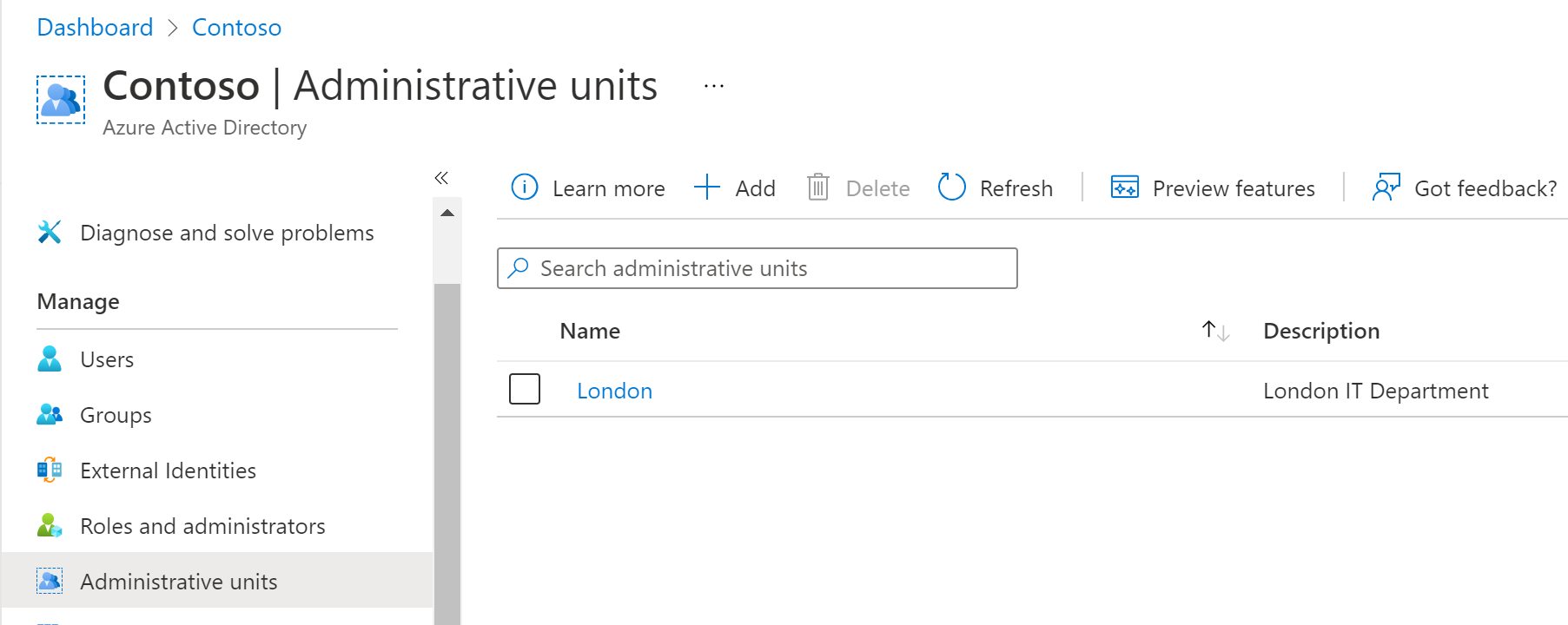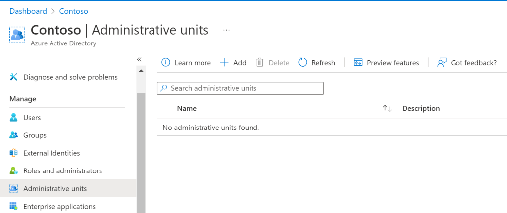 Head Over to Azure AD admin center and go to Manage > Administrative Units